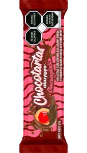 Strawberry flavor jam, fruit pulp, cocoa powder, gluten, soy, milk and sulfites.